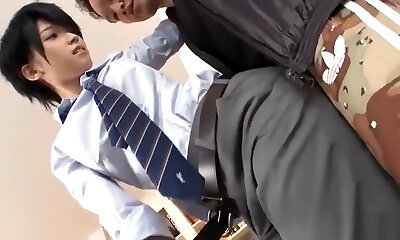 Subtitled Japanese crossdresser Kaoru Oshima rooftop handjob