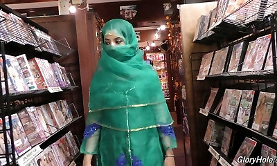 Hot Pakistani female Nadia Ali sucks big dick in the glory crevice room