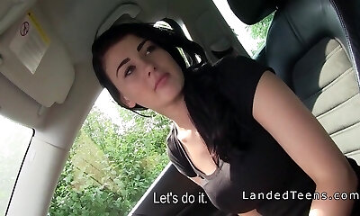 Shaved pussy teenage fucks in strangers car