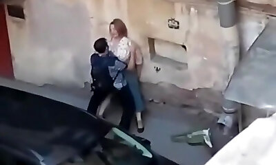 窥探一个沉重的小妞得到性交从阳台